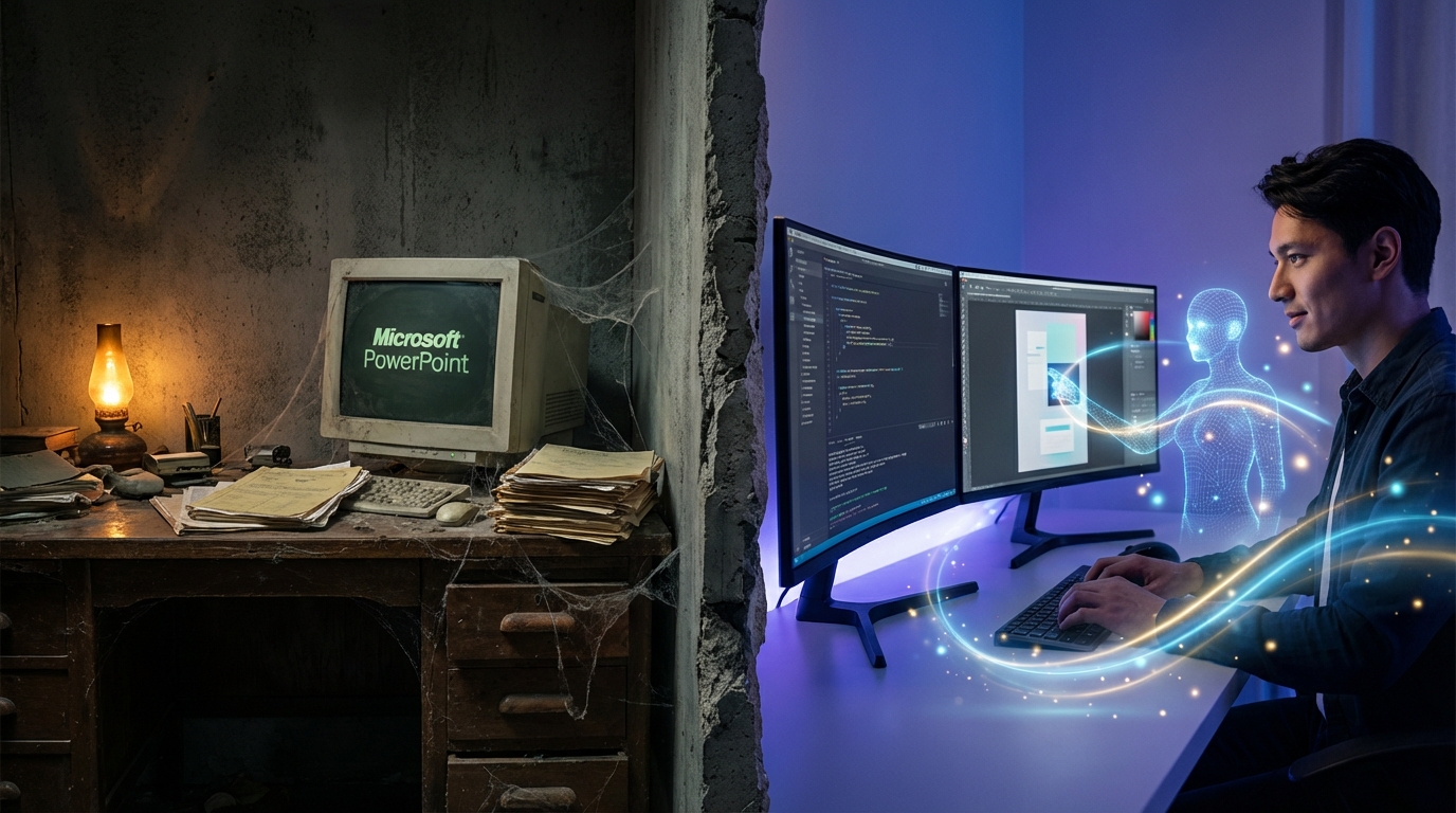 プレゼンテーション業界で23年間カンファレンスを回した男と、ツールが壊れるたびに乗り換えてきた男。同じ時間を過ごして、辿り着いた場所が違う。
